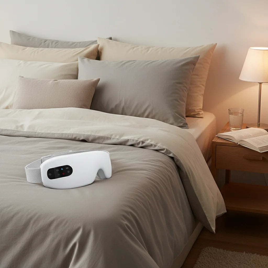 Give your eyes the care they deserve. Our lightweight, foldable eye massager combines soothing vibrations, gentle heat, and wireless audio to relieve eye strain, improve sleep, and help you unwind—anytime, anywhere.